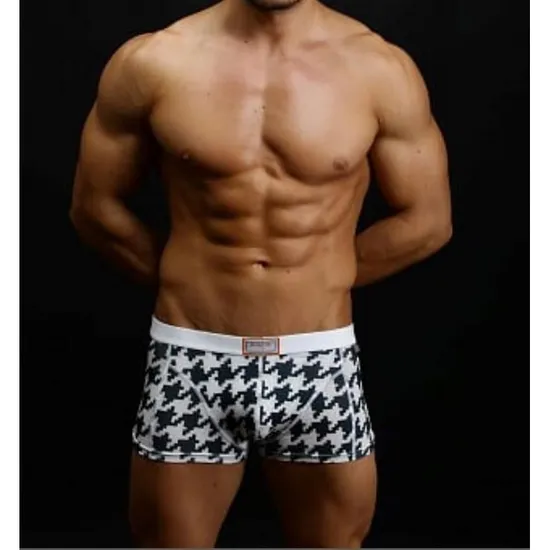 Трусы мужские боксеры белые c темно-серым принтом Boefje 34432