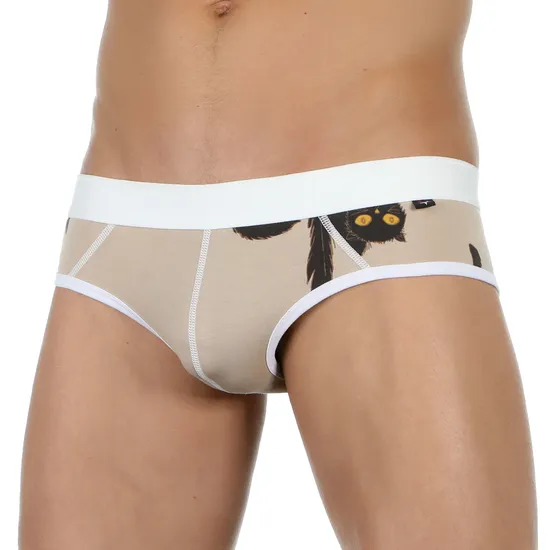 Трусы мужские брифы бежевые с белой резинкой Van Baam 39221