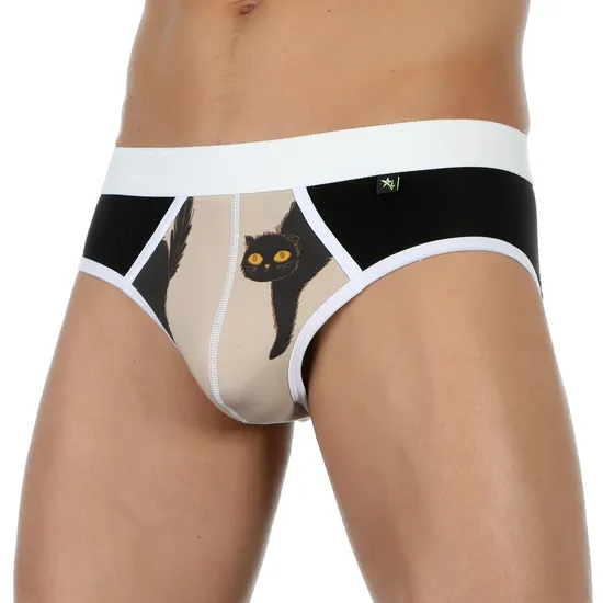 Трусы мужские брифы бежевые с принтом и черной вставкой Van Baam 39218