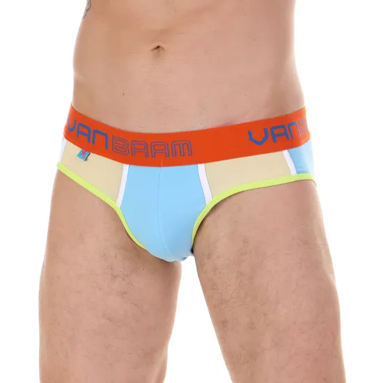 Трусы мужские брифы голубые с жёлтыми вставками Van Baam 45188