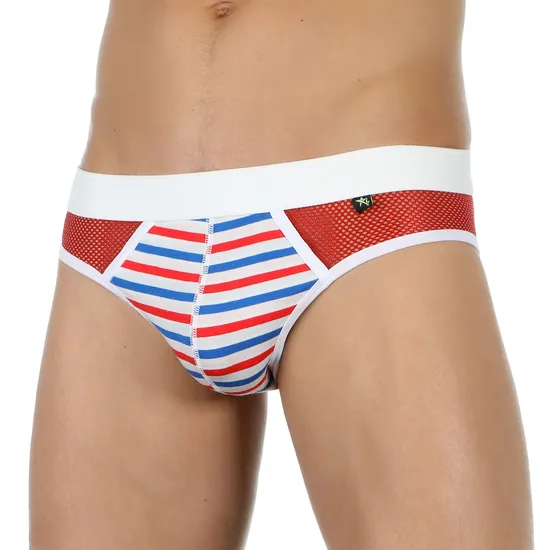 Трусы мужские брифы в разноцветную полоску с красной вставкой Van Baam 39200