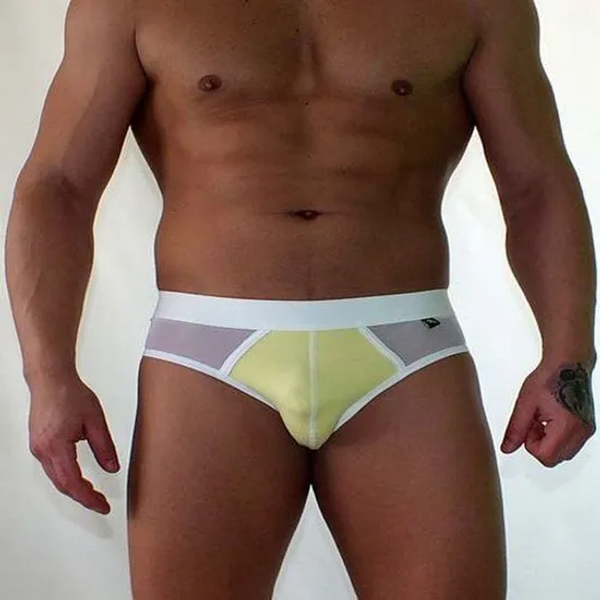 Трусы мужские брифы желтые с полупрозрачной вставкой  Van Baam VB-38130