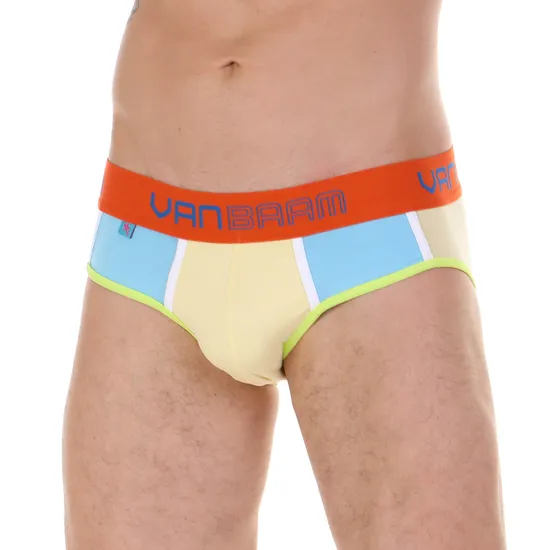 Трусы мужские брифы жёлтые с голубыми вставками Van Baam 45187