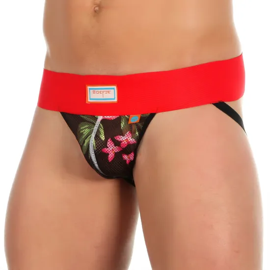 Мужские трусы джоки черные с принтом с красной резинкой Boefje